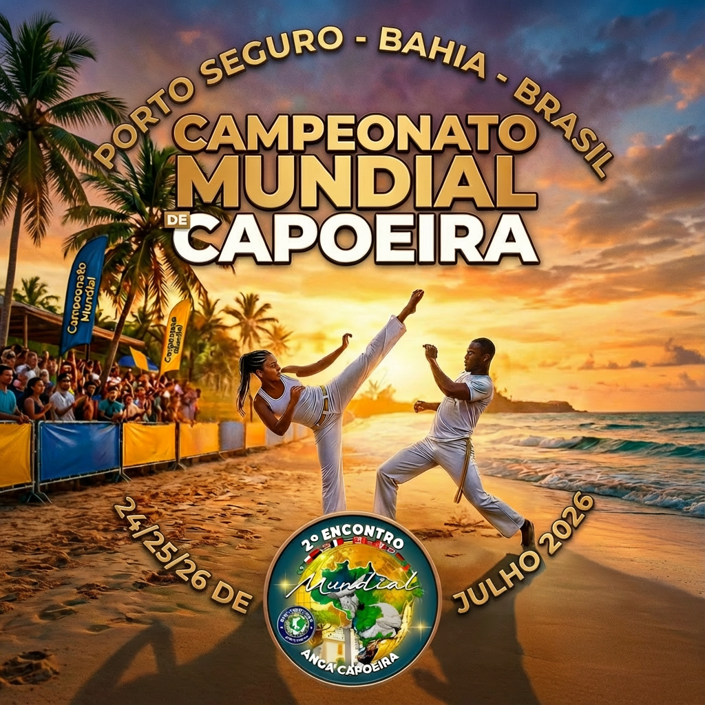 Bem-vindo à página oficial de inscrição do Campeonato Mundial de Capoeira Angá! Prepare-se para um evento internacional inesquecível nos dias 24, 25 e 26 de julho de 2026. Nosso campeonato é uma celebração multilíngue da Capoeira, aberta a todos os apaixonados — desde iniciantes até profissionais — vindos de todas as partes do mundo.